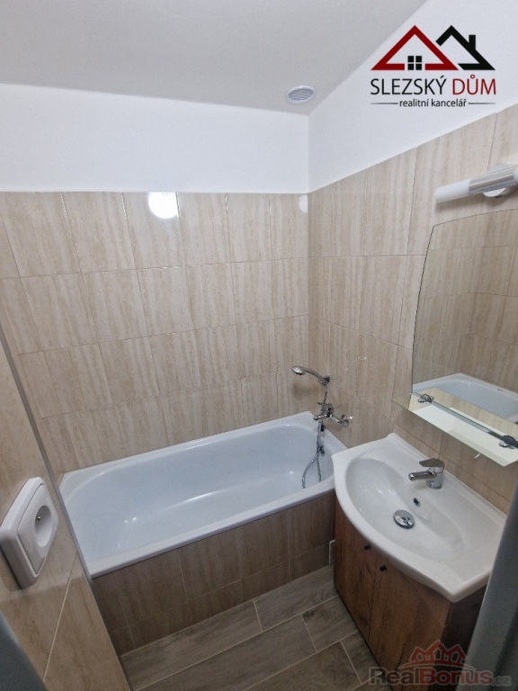 Koupelna je po celkové rekonstrukci s vanou, která nebyla použita, nové jsou i ostatní zřizovací předměty.