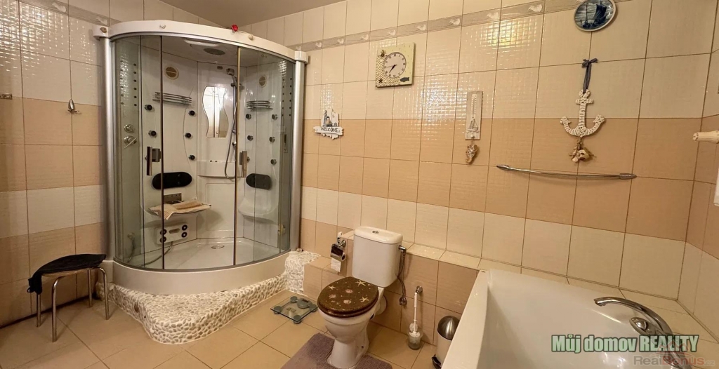 Součástí domu jsou dva krby (interiérový a venkovní grilovací), internet, vlastní plynový kotel, kompletní napojení na inženýrské sítě.