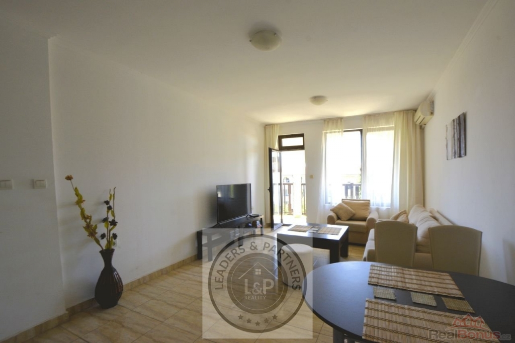 Realitní kancelář Leaders & Partners Vám nabízí k prodeji zařízený apartmán 2+kk (59 m2) s prostorným balkonem a se společným bazénem v obytném komplexu "Watermill" v lokalitě Sveti Vlas v Bulharsku. Apartmán se nachází přibližně 300 m od moře a pláže.