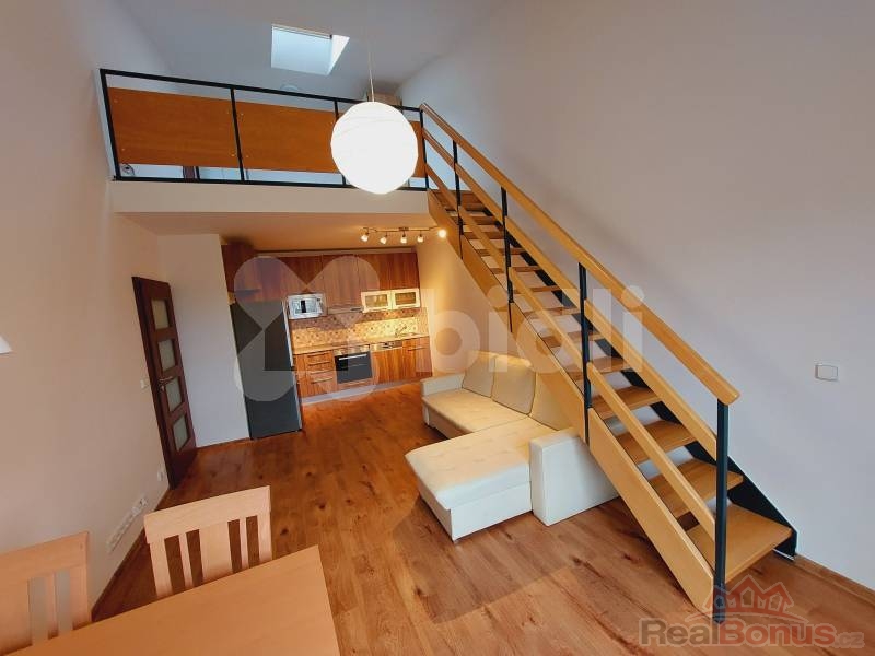 Naše společnost Vám doporučuje k pronájmu byt 3+kk 74 m2 v Berouně, v oblíbené a vyhledávané lokalitě Palouček. Jedná se o mezonetový byt ve 2NP, který je částečně vybaven. Vstupní chodba, koupelna s vanou (pračka), samostatné wc, prostorný obývací pokoj s kuchyňskou linkou (lednice), ze kterého se po schodech dostaneme do mezonetového prostoru (velká šatní skříň) a pokoje. Dále zde je další pokoj, ve kterém je vytvořeno spaní na dřevěné konstrukci (patro). V místě veškerá občanská vybavenost, parkování možno u domu. K bytu náleží sklepní koje v domě, možnost využití kočárkárny/kolárny. Nájezd na dálnici D5 do 5min. K nájemnému je třeba připočítat zálohy na služby ve výši Kč 7.600,-. Vřele doporučujeme!