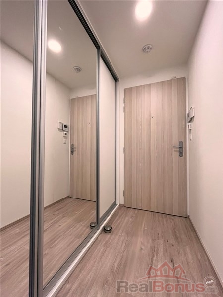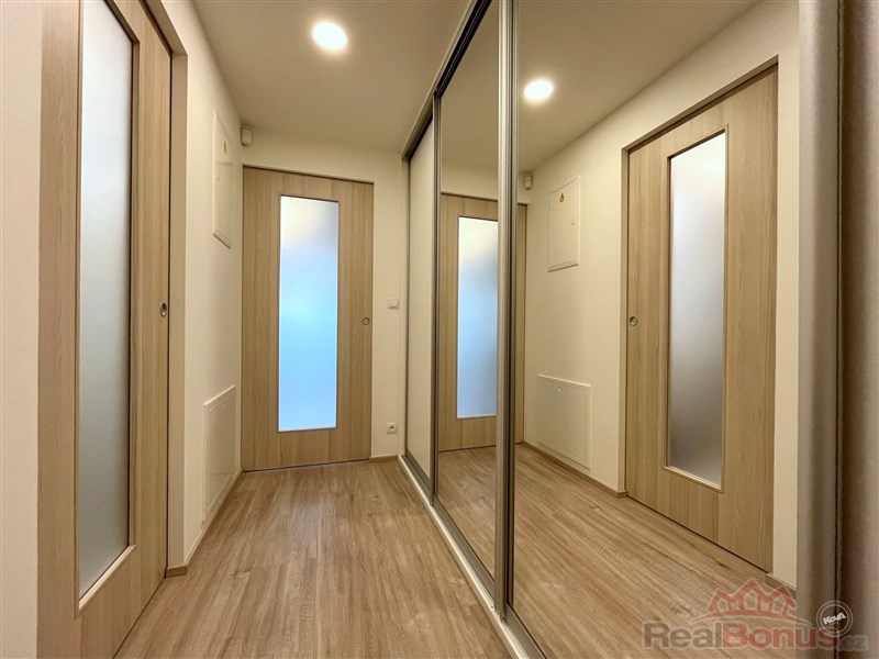 Byt je vybaven bezpečnostními vstupními dveřmi, domácím videotelefonem a zabezpečovacím systémem Jablotron. Předsíň disponuje hlubokou vestavnou skříní. Koupelna s velkoformátovým obkladem v imitaci kamene nabízí prostorný sprchový kout, umyvadlo a toaletu.
