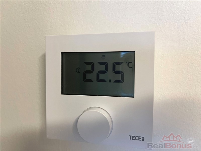 Dominantou bytu je velkoformátové okno s jižní orientací, které zajišťuje dostatek denního světla. Pomocí předokenních elektrických žaluzií lze byt efektivně zatemnit. O čerstvý vzduch po celý den se stará systém rekuperace v bytě i domě. Vytápění je komplet podlahové.
