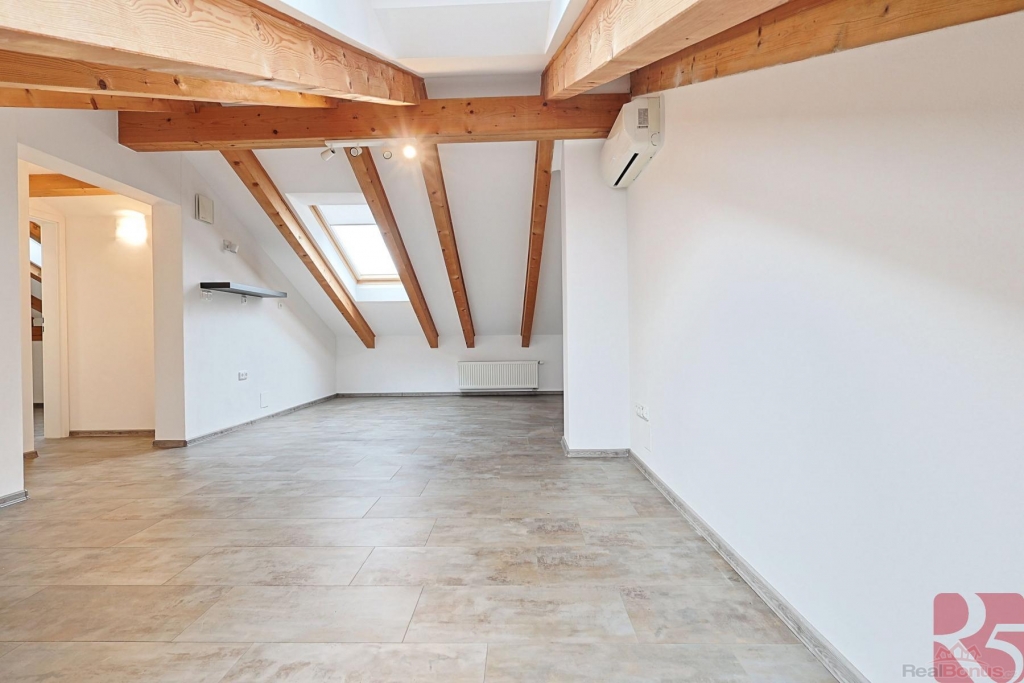 Zde dvě podkrovní místnosti s klimatizací a velká koupelna s vanou a toaletou.