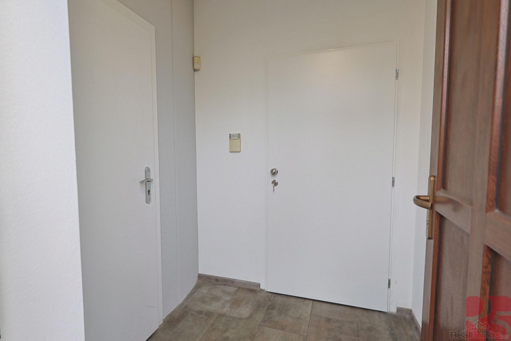 Ze vstupní chodby je přístupná malá koupelna a komora pod schodištěm do druhého podlaží bytu.