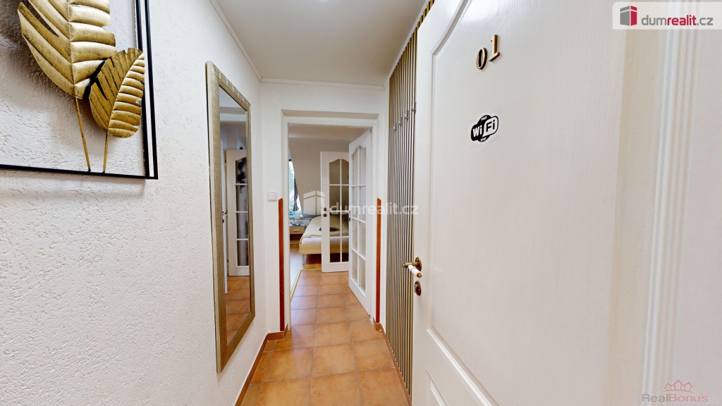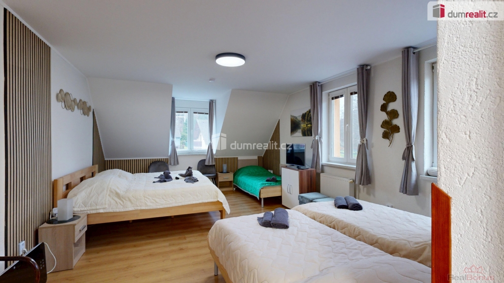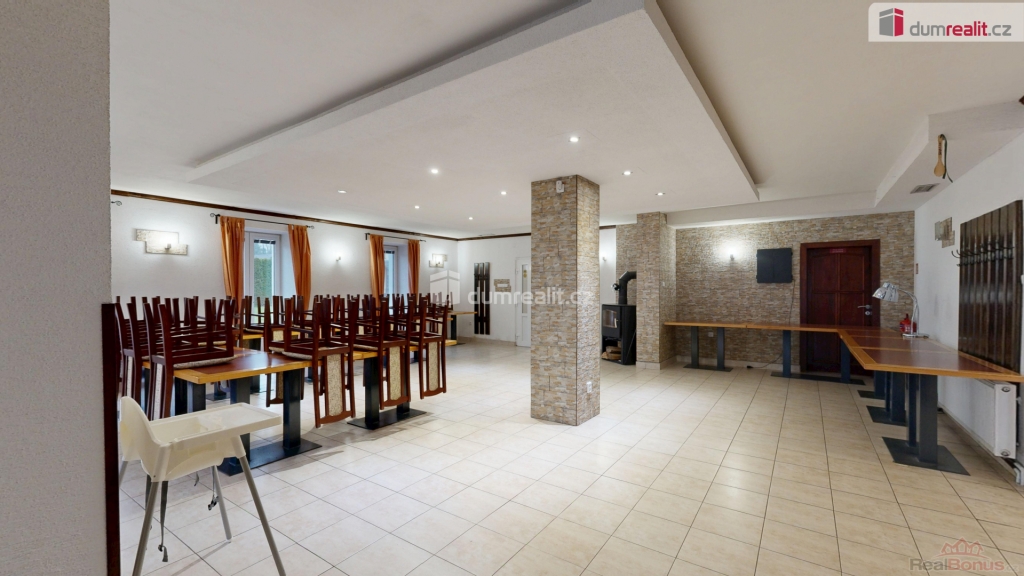 , Nabízíme k prodeji Penzion Karin, nemovitost s jedinečnou atmosférou, situovanou v malebném podhůří Hrubého Jeseníku. Penzion se nachází v klidné části města Rýmařov, konkrétně ve vísce Edrovice, která leží v bezprostřední blízkosti oblíbeného lyžařského střediska Karlov pod Pradědem. Celý areál je zasazen do poetického prostředí, které podtrhuje šumění protékajícího Podolského potoka, jenž symbolicky spojuje penzion s pouhých 300 metrů vzdáleným historickým skvostem Zámkem Janovice. Tato lokalita zaručuje nejen klid a soukromí, ale i stálý turistický potenciál. Penzion Karin se svou velikostí a dispozicemi řadí mezi kapacitně větší zařízení v regionu, což mu poskytuje značnou konkurenční výhodu. Ubytovací část disponuje celkovou kapacitou 25 lůžek rozdělených do sedmi apartmánů, které doplňuje bohaté zázemí pro stravování a zábavu. Srdcem podniku je restaurace pro 60 hostů, na kterou navazuje venkovní terasa s dalšími 40 místy, ideální pro letní posezení. Součástí objektu je rovněž herní salónek pro 16 osob, vybavený kulečníkem a profesionálními šipkami. Díky tomuto velkorysému prostoru je penzion velmi oblíbeným a vyhledávaným místem pro pořádání širokého spektra společenských akcí od svateb, narozeninových párty a rodinných dovolených, přes firemní teambuildingy a vánoční večírky, až po smuteční hostiny či srazy spolužáků. Významnou předností pro budoucího majitele je flexibilní a již zavedený model provozu. Penzion je v současnosti koncipován primárně jako prostor bez obsluhy, kdy klienti platí pouze za pronájem prostor a vše ostatní si řeší ve vlastní režii, což minimalizuje provozní náklady. V případě zájmu je však možné s prodejem domluvit i zajištění kompletního personálu, což otevírá dveře i investorům, kteří neplánují být v každodenním provozu přímo angažováni. Penzion Karin tak představuje ideální kombinaci klidného prostředí, strategické polohy a variabilního obchodního využití. Ev. číslo: 649448. Energetický štítek: G