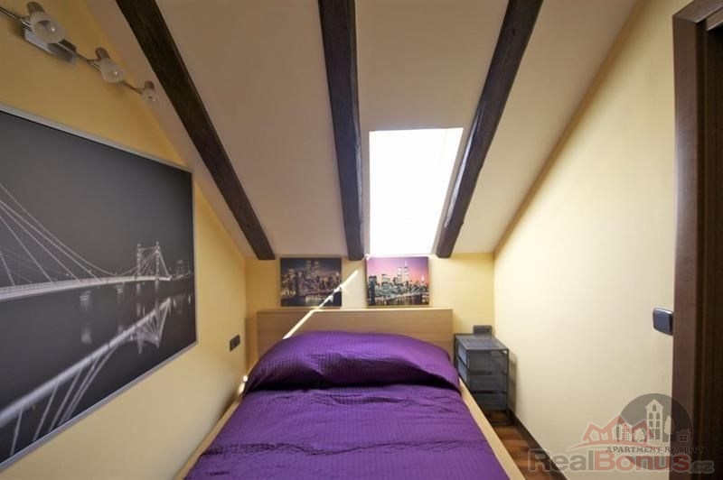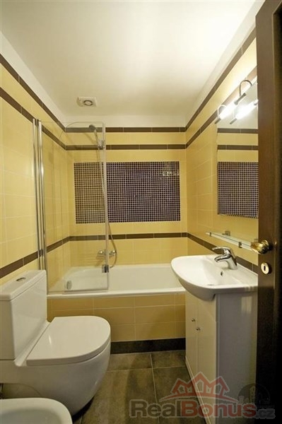 Byt se sestává z obývacího pokoje s kuchyňským koutem, 2 ložnic, 2 koupelen + WC, v 5 patře. Byt je zařízený. Nájem: 26 000, Kč + 1100, Kč domovní služby za osobu (vodné, stočné, úklid domu, výtah, osvětlení v domě atd.) + revize kotle 220 Kč/měsíc + elektřina a plyn na vlastní náklady. Volný ihned. Domácí zvíře dovoleno.