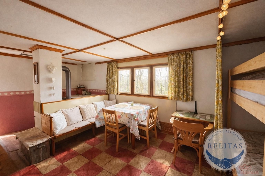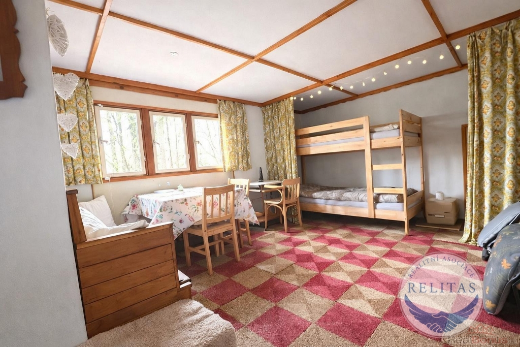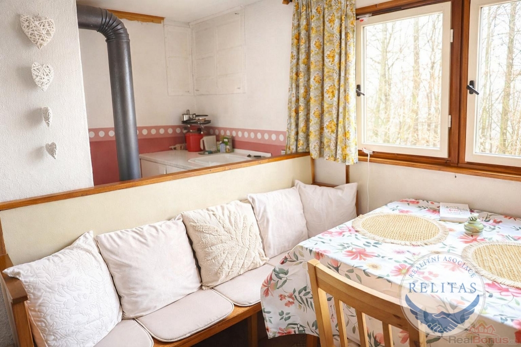 Zvenku Popelka, uvnitř útulný prostor, který Vás překvapí! Nabízím Vám chatu v Černolicích, 24 km jižně od Prahy směr Mníšek pod Brdy, v lese, v klidu, uprostřed vzrostlých stromů. Ideální pro houbaře a milovníky jednoduchého bydlení v přírodě. V lokalitě se nachází jen tři menší chaty, toto je jedna z nich. Vzdálenost mezi nimi je desítky metrů, pozemek kolem nich historicky oplocen drátěným pletivem, což vymezuje hranici pro vstup do této části lesa a zabraňuje nepovolaným chodit až k chatě. Parkování 5 minut chůze od chaty, na okraji obce. Přijedete po asfaltové komunikaci, zaparkujete na začátku lesa, pak kousek pěšky k chatě. Vnitřní prostor chaty o výměře 24 m2 zahrnuje jednu velkou místnost s kuchyňským koutem, půdní podkrovní prostor plus sklep, do kterého se dostanete po žebříku z vnitřku chaty, otevíratelným poklopem v podlaze. Chata se nachází na obecním pozemku, k výhradnímu užívání má od obce k dispozici plochu 90 m2, cena pronájmu obecního pozemku 1.097 Kč/celý pozemek/rok, odvoz odpadu 950 Kč/rok. Chata je ve velmi dobrém stavu, majitel prováděl průběžnou údržbu. Postavená je z panelů a částečně dřevěného sendviče, do kterého je zasazeno okno s výhledem do lesa, s uzavíratelnou kovovou okenicí. Místo sendviče je možné zasadit francouzské okno a mít tak ještě větší kontakt s přírodou. Před chatou je menší terasa pro umístění lehátek, křesel, stolečku na knihu či kávu. Voda, kanalizace ani elektřina nejsou zavedeny, vaří se na dvouvařiči na 2kg PB bombu, v chatě funguje nové chemické WC. Vytápění zajišťují krbová kamna na dřevo. Možno chatu vybavit solárními panely, elektrocentrálou, kvůli vodě vybudovat studnu, místo wc zvážit venku kompostovací toaletu. Všechno vybavení chaty tak jak ho vidíte na fotografiích je zahrnuté v ceně chaty, současný majitel přenechává chatu s veškerým nábytkem, vybavením, zásobeným sklípkem, drobnými předměty i s vybavením k údržbě chaty. Nepromeškejte příležitost zajistit si oázu klidu poblíž hlavního města. V obci Černolice žije 576 obyvatel. Za obcí se nacházejí Černolické skály, chráněná přírodní rezervace. Během procházek můžete navštívit i rozhlednu Korunka. Dokonalý únik z města či digitální detox.
