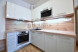 Vstupní předsíň s šatní stěnou a vestavnou skříní, koupelna s vanou, toaletou, umyvadlem a topným žebříkem, obývací pokoj s kuchyňským koutem a moderní kuchyňskou linkou vybavenou vestavnými spotřebiči (indukční varná deska, trouba, mikrovlnná trouba, myčka nádobí, digestoř).