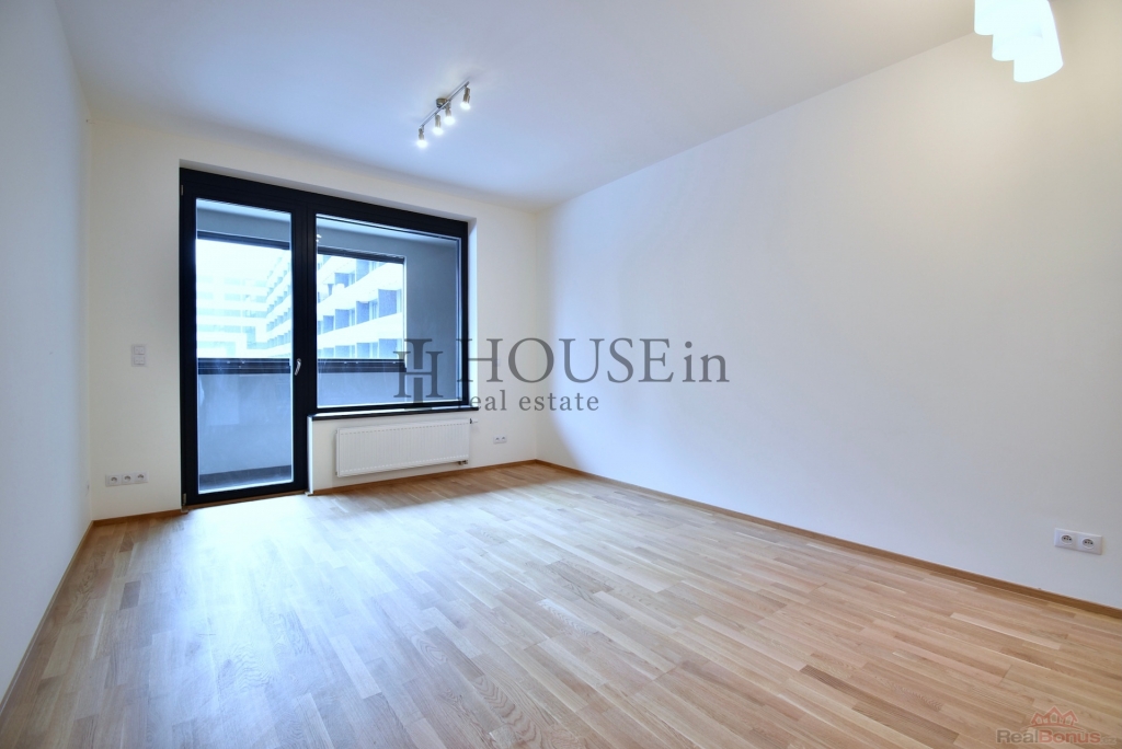 Z obývacího pokoje i ložnice je vstup na velkou zasklenou lodžii, která se táhne přes obě místnosti. Součástí pronájmu je také sklep v 1. podzemním podlaží a garážové stání pro osobní automobil.