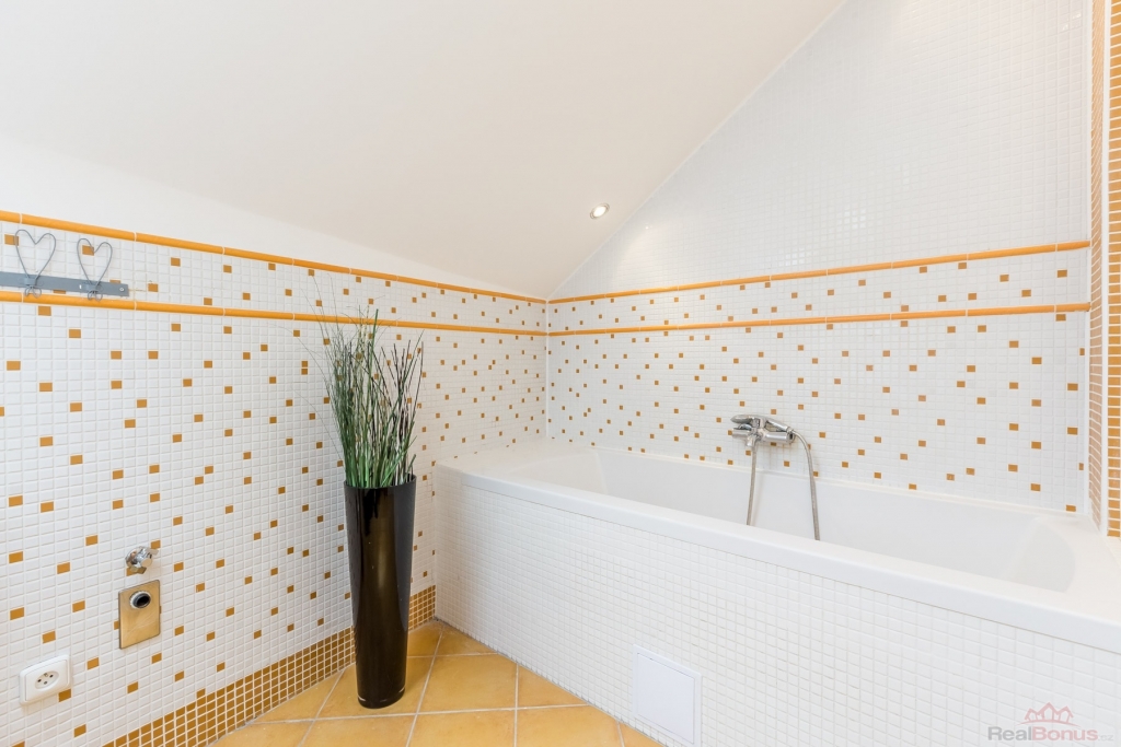 V podkroví domu, tedy v druhém podlaží bytu, se nachází čtyři pokoje, koupelna s vanou, samostatná toaleta a chodba s vestavěnými skříněmi.