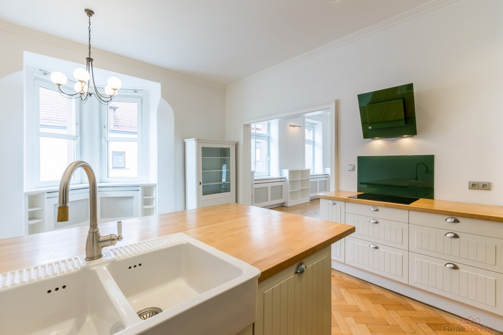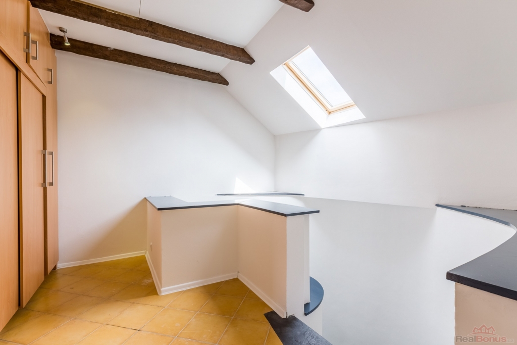 Nabízíme k pronájmu nadstandardní mezonetový byt o dispozici 6+1 s možností využití jako kanceláře. Celková velikost je 174 m2. Nemovitost se nachází v samém centru Slaného, v ulici Třebízského, v cihlovém měšťanském domě. Jednotka zabírá celé první patro a podkroví domu.