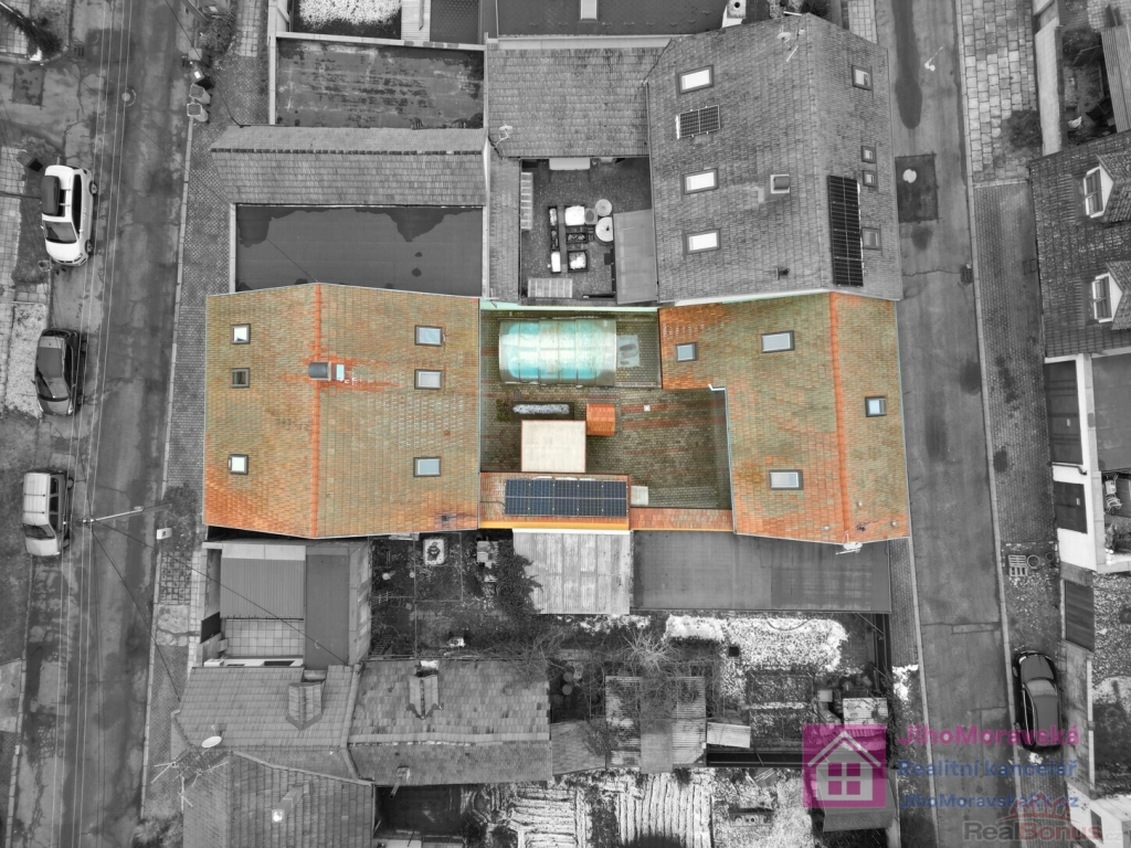 Ve dvoře najdete krytý bazén a vinný sklípek. Vedle dvougaráže je bytová jednotka 1+kk a v podkroví další bytová jednotka o velikost 2+kk. Do obou bytových jednotek je samostatný přístup z druhé ulice.