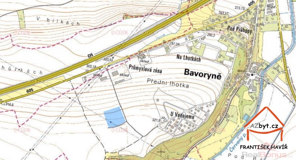 Bez provize. Exkluzivně nabízím k prodeji stavební pozemek u dálnice D5 na stavbu haly o rozměrech 44 m x 47 m a související pozemek na skladování a parkování, celkem 9 892 m2, v průmyslové zóně obce Bavoryně.