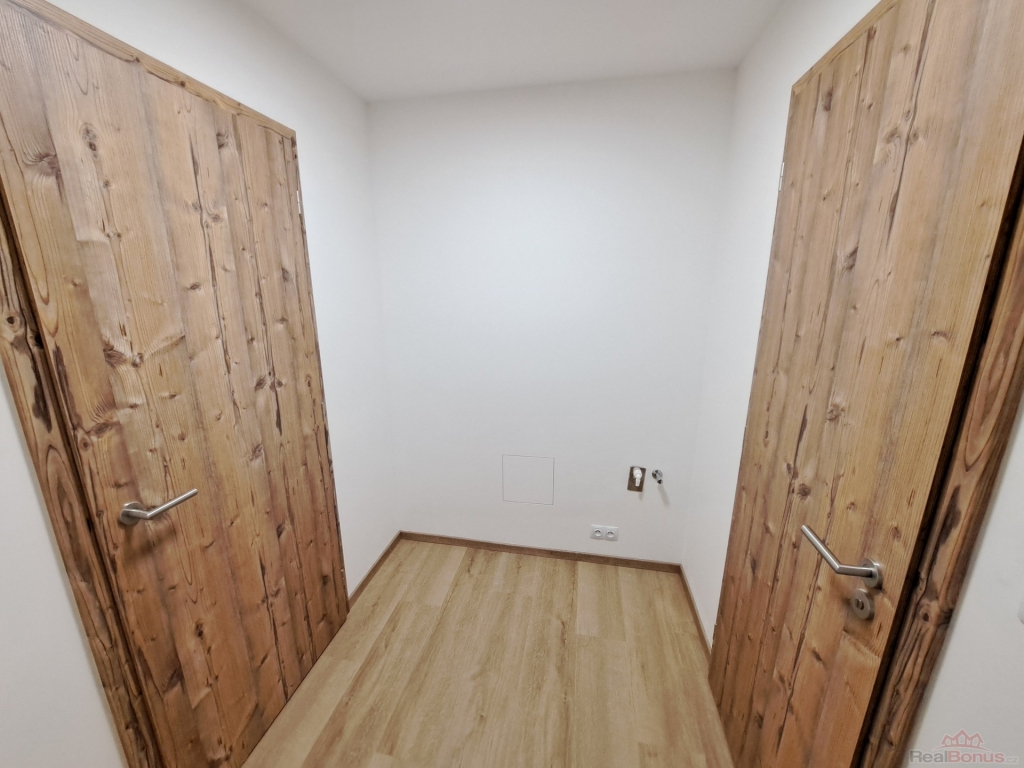Vstupní chodba, obývací pokoj s kuchyňským koutem (20,0 m2) s východem na terasu (184,1 m2), předsíň, pokoj 1 (12,0 m2), pokoj 2 (11,6 m2), koupelna s WC, samostatné WC, sklep, 1x garážové stání.