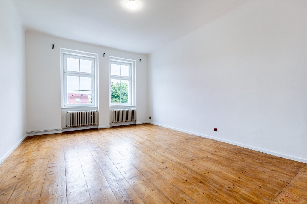 Jednotka sestává z obývacího pokoje, kuchyně, třech pokojů, koupelny, samostatného WC, komory a vstupní haly. Kuchyně je vybavena kuchyňskou linkou. Místnosti jsou prostorné, navíc díky vysokým stropům velice vzdušné. K dispozici je velký sklep v suterénu domu.