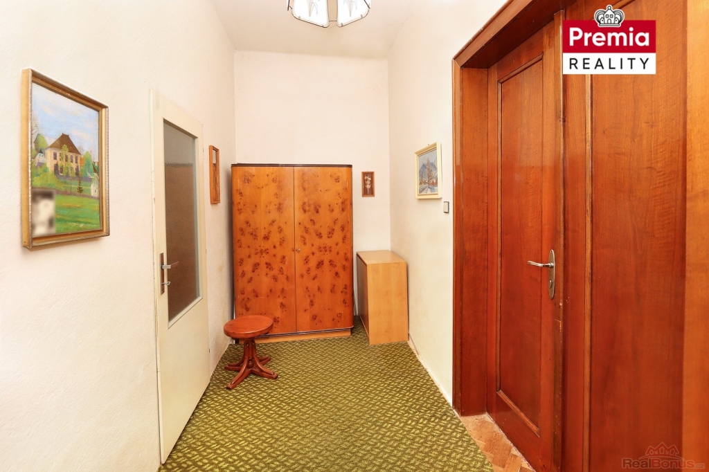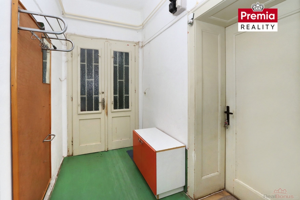 Dispozičně je byt zajímavě řešen ? společná chodba jej přirozeně rozděluje na dvě části. Z jedné strany je vstup do tří samostatných pokojů, z druhé strany se nachází kuchyně, komora a koupelna. Toto uspořádání umožňuje případné rozdělení na dvě menší bytové jednotky, což z nemovitosti činí také atraktivní investiční příležitost.