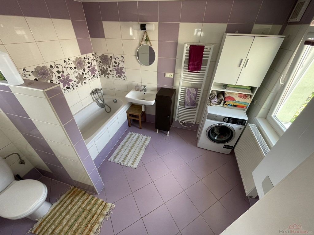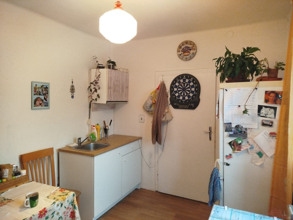 2.NP - menší kuchyňka, 2 velké pokoje, balkon, rodinná koupelna s vanou a WC, úložné prostory, vstup na půdu.