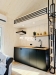 vodu, vestavěnou ledničkou, 2 plotýnkovou eletrickou varnou deskou a digestoří (uhlíkový filtr) , dubová jednodílná vrchní police.