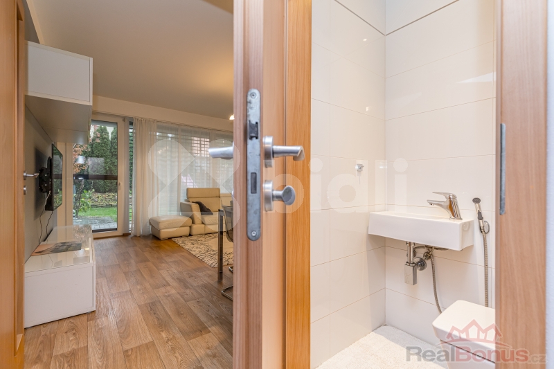 Byt se nachází v přízemí novostavby z roku 2011, má předzahrádku (50 m2) orientovanou do klidného vnitrobloku, je kompletně vybavený nábytkem (viz foto). Bytová jednotka je vytápěna centrální plynovou kotelnou umístěnou v domě, která zajišťuje také ohřev teplé vody. Byt má plastová okna s předokenními elektrickými roletami.