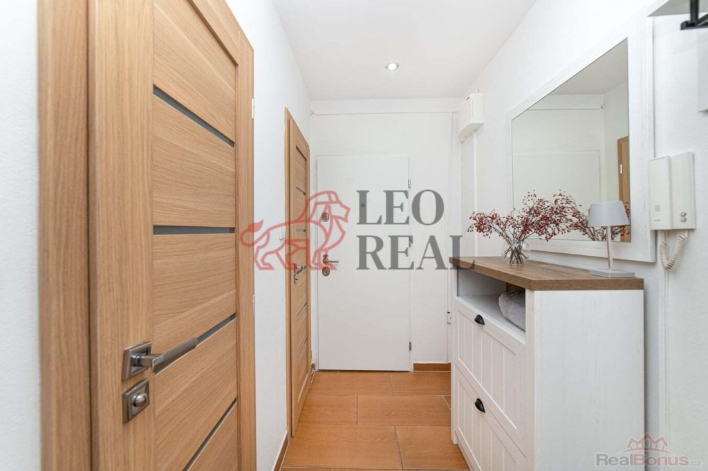 Téměř všechen nábytek z fotografii zůstává k dispozici a to : kompletní vybavení předsíně, v kuchyni zůstává jídelní stůl + židle, ložnice - postel, noční stolky, komoda, skříň, obývací pokoj - sedačka, konferenční stůl, závěsná prosklená skřínka, skřínky pod TV, černý regál u okna, černý regálek u radiátoru.