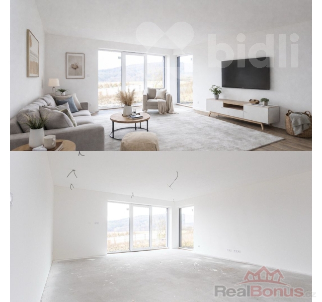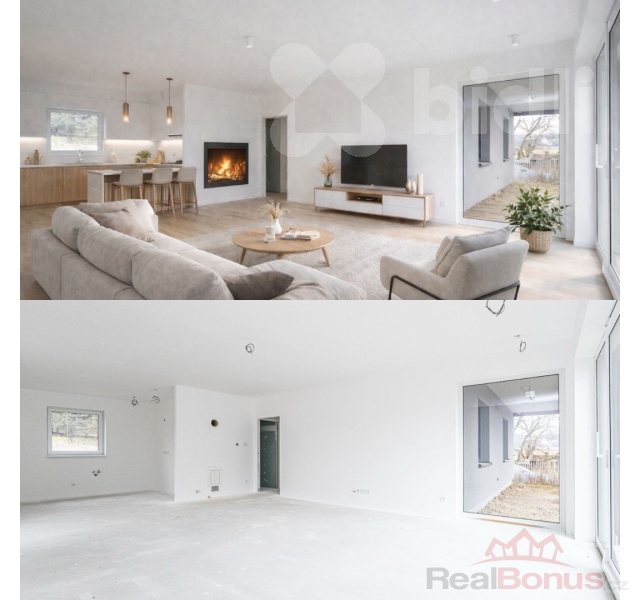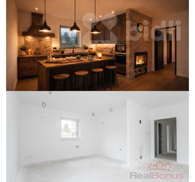 Dům je prodáván ve stavu před dokončením interiéru. Cena nezahrnuje kuchyni, zařizovací předměty, podlahy, interiérové dveře, obklady ani dlažby, aby si nový majitel mohl interiér dokončit dle vlastního vkusu a rozpočtu.