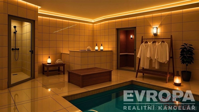 připravený wellness prostor (sauna, relaxační zóna)