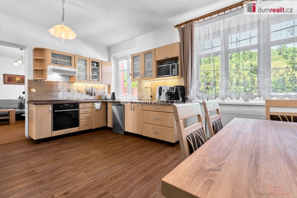 Cena vč. právních služeb a provize RK, Dumrealit.cz Vám zprostředkuje prodej prostorného rodinného domu v Radošově, části obce Kyselka nedaleko Karlových Varů. Tento zděný dům s celkovou podlahovou plochou 210 m (+ sklep, + půda) na pozemku o výměře 535 m nabízí možnost bydlení pro dvě rodiny. Dům se skládá z dvou samostatných bytů 3+1 v 1.NP a 2+1 v 2.NP, každý s koupelnou a WC. Dále je zde prostorná půda s možností vybudování dalšího samostatného bytu. V současné době jsou zde 2 samostatné pokoje (dětské pokoje) a příprava na vytápění a elektřinu. Z větší části dům prošel před několika lety postupnou modernizací: plastová okna vč. parapetů, omítky, stropy, rozvody elektroinstalace, vody, a topení vč. těles radiátorů. Dům je celopodsklepený a je napojen na veškeré inženýrské sítě (voda, kanalizace, elektřina, plyn). Vytápění domu a ohřev vody je zajištěn kotlem na tuhá paliva se zásobníkem. Na pozemku se nachází garáž a zastřešená pergola pro relaxaci a posezení s přáteli. Díky klidné lokalitě a snadné dostupnosti občanské vybavenosti máte vše potřebné na dosah ruky. Nenechte si ujít tuto skvělou příležitost k bydlení v malebném prostředí nedaleko Karlových Varů. Vzdálenost města Ostrov 12 min. automobilem nebo Karlových Varů 17 min. automobilem. Pro více informací a prohlídku nás neváhejte kontaktovat. Vzhledem k tomu, že před zadáním do inzerce nebyl vyhotoven PENB, je tento dům v souladu s platným zákonem zařazen do energetické třídy G. Ev. číslo: 652221. Energetický štítek: G
