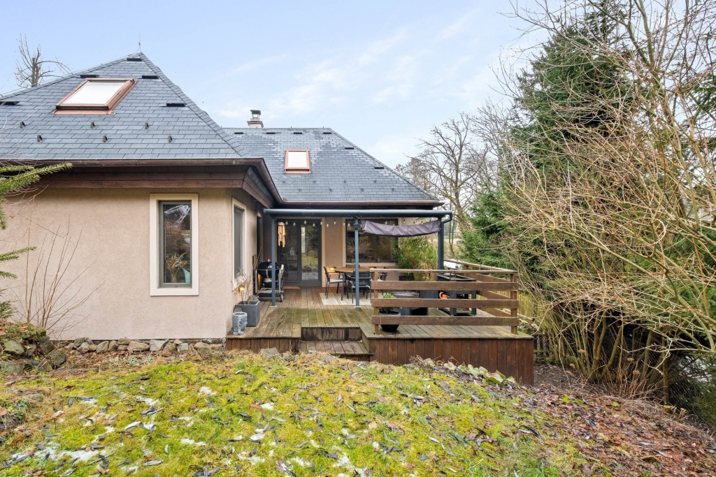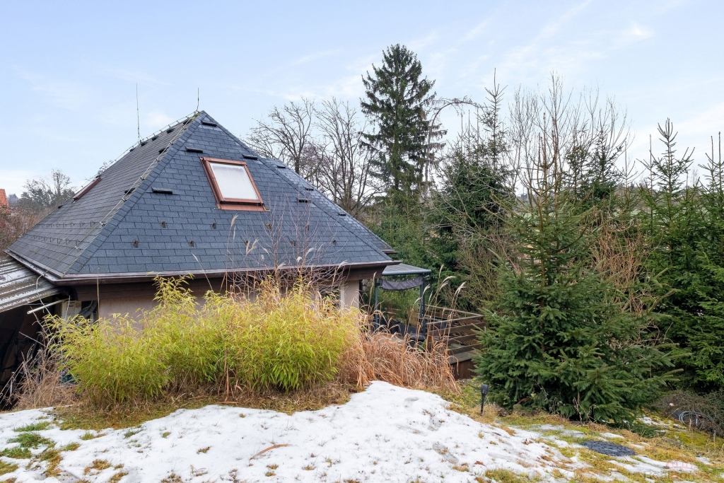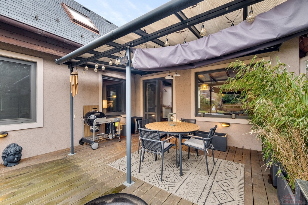Na obytnou část domu plynule navazuje terasa, která je nově zastřešena hliníkovou konstrukcí a vytváří příjemné místo pro posezení. Dům je zasazen do jižně orientované zahrady, která je částečně okrasná, poskytuje dostatek soukromí a není jednotvárná. Zahrada poskytuje prostor pro nadzemní bazén, relaxační zónu i další využití podle vašich představ. V přední části pozemku u vjezdu je navíc místo, kde lze dobudovat přístřešek pro auto.