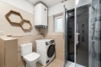 Provozní náklady patří mezi silné stránky tohoto domu. Vytápění je řešeno primárně krbem, který dům rychle a efektivně vytopí a umožňuje udržet nízké náklady na topení. V letních měsících oceníte splitovou klimatizaci, která zajišťuje příjemné ochlazení, v zimě pak může sloužit i k přitápění. Přestože energetický štítek PENB uvádí třídu E, v praxi se jedná o dům s velmi příznivým provozem, což potvrzují reálné roční náklady. K efektivitě bydlení přispívá také konstrukční řešení domu, jeho jižní orientace a kvalitní zateplení podkroví. Velkou výhodou je rovněž skutečnost, že na pozemku je již zbudována přípojka obecního vodovodu.