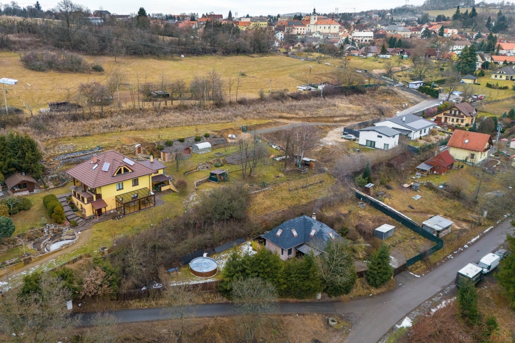 Dům se nachází v klidné ulici V Dolích, mimo hlavní komunikace a rušivé vlivy, přesto v pohodlné docházkové vzdálenosti od centra obce, obchodů, služeb i autobusového spojení. Velkým benefitem lokality je také přírodní koupaliště ? biotop, které je od domu vzdálené přibližně tři minuty chůze. Místo působí velmi příjemně, klidně a má dobrou energii, která se zde přirozeně odráží v každodenním bydlení.