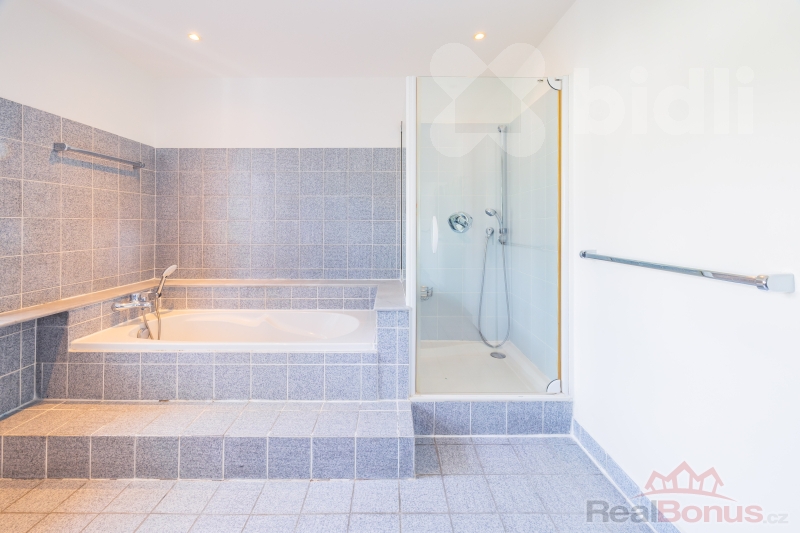 Koupelna u ložnic a zázemí s toaletou v nejvyšším patře nabízí dokonale praktické řešení. V přízemí ja zároveň další samostatná toaleta.