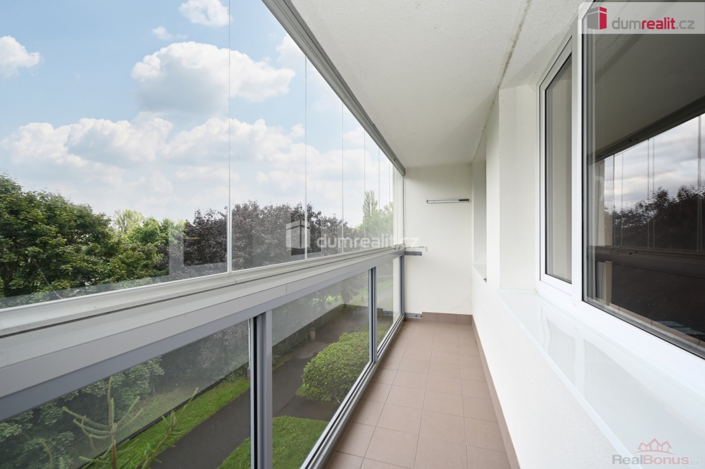 Výhodou bytu je velká zasklená lodžie s výhledem na řeku a přilehlý park.