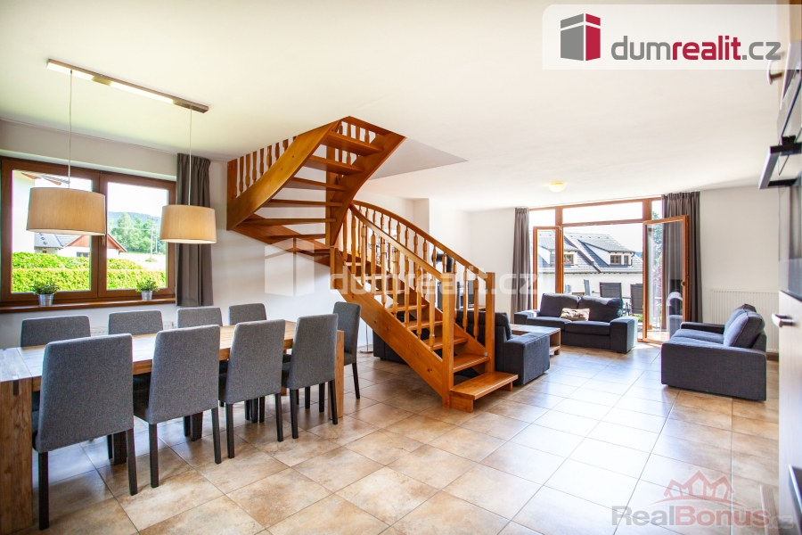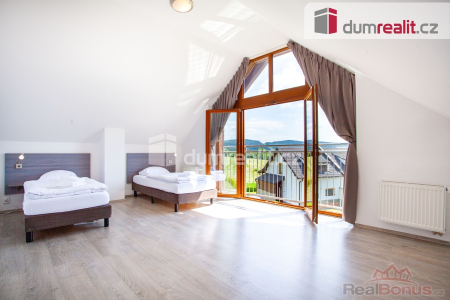 Více informací Vám poskytne makléř Tomáš Pelda., Dumrealit.cz Vám zprostředkuje prodej světlého, vybaveného rezidenčního rodinného domu 6+kk se 3 koupelnami, skladem a terasou v klidné a žádané lokalitě v obci Lipno nad Vltavou, s výhledem na vodní nádrž Lipno. Zděný rodinný dům vystavěný v roce 2014 je v TOP stavu a je připravený k okamžitému užívání. Objekt se pronajímá na krátkodobé rekreační ubytovaní s výnosem až 600.000,- Kč ročně! Investiční kalkulaci Vám předložím při prohlídce domu. RD je vystavěn do 2 nadzemních podlaží, ve kterých disponuje 5 pokoji, 3 koupelnami, rozlehlým obývacím pokojem spojeným s kuchyňským koutem s jídelnou a vstupem na slunnou terasu. U vstupu do domu je sklad na lyže, kola, grill apod. Podrobné rozkreslení jednotlivých podlaží naleznete na orientačním plánku mezi fotografiemi. Vytápění je elektrokotlem, které je možné ovládat přes mobilní telefon, nebo kamny na tuhá paliva, která jsou umístěna v obývacím pokoji. Objekt je napojený na veřejný vodovod a obecní kanalizaci. Doporučuji prohlídku, dům je možný okamžitě užívat k bydlení, nebo k investici. Více informací Vám poskytne realitní makléř Tomáš Pelda z RK A TEMPO fungující pod ochrannou známkou dumrealit.cz. Zajistíme Vám financování a veškeré právní služby přes advokátní kancelář Neubauer & Partner. Těšíme se na Vás při prohlídce tohoto krásného reprezentativního domu. Ev. číslo: 654689. Energetický štítek: C