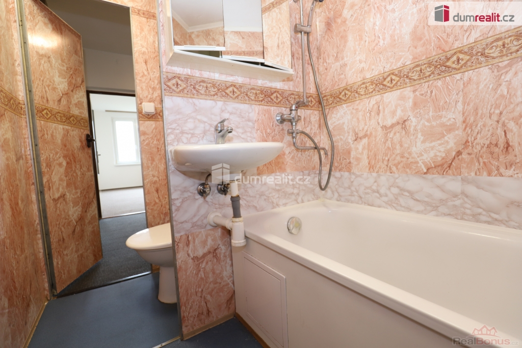 , Dumrealit.cz Vám zprostředkuje koupi pěkného udržovaného bytu 2+1/L/S ve třetím patře panelového domu v Hroznětíně u Karlových Varů. Celková rozloha bytu činí 64 m a nabízí oficiálně dispozici 2+1 s pěknou lodžií s tím, že kuchyňská linka a jídelní kout jsou nyní prakticky přepaženy čímž vznikla praktická neoficiální dispozice 3+1. K bytu patří dva sklepy, jeden je v osobním vlastnictví a náleží k bytu, druhý sklep je pronajatý za cenu 50,-Kč měsíčně. Bytová jednotka prošla částečnou rekonstrukcí s tím, že jsou zde nová plastová okna, jsou zde nové štuky a pěkné zdi, kuchyňská linka je zánovní. Elektroinstalace v koupelnovém jádře a v kuchyni je již v mědi. Vytápění a ohřev teplé vody je zajištěn skrze vlastní plynovou kotelnu v budově. Do budovy je zaveden plyn. Budova je po revitalizaci včetně zateplené fasády, střechy, jsou nové vstupní dveře a zvonky, také jsou nové stupačky a rozvody vody. Před domem je velké parkoviště, na dohled (130 m vzdušnou čarou) je škola, hřiště, družina, sportoviště. V okolí je veškerá občanská vybavenost, je zde lékař, knihovna, potraviny, pošta. Do 5 minut jízdy autem je Ostrov, kde jsou úřady, supermarkety atd.. 12 minut jízdy jsou Karlovy Vary, které se staly součástí světového kulturního dědictví UNESCO, město je dějištěm každoročního filmového festivalu, je plné parků, výborných restaurací. V Karlových Varech pramení desítky teplých léčivých pramenů, zároveň je město zasazeno v krásné přírodě a není daleko od německých hranic a je vzdáleno hodinu jízdy od okraje Prahy. K bytu je možné dokoupit garáž s elektřinou, která je vzdálena cca 150 m od domu (bližší informace u makléře). Byt je prost jakýchkoli závazků či nároků třetích stran. Cena zahrnuje provizi realitní kanceláře a veškerý právní servis. V případě zájmu Vám doporučíme naše prověřené hypoteční poradce. Ev. číslo: 654683. Energetický štítek: G (20 kWh/m2/rok).