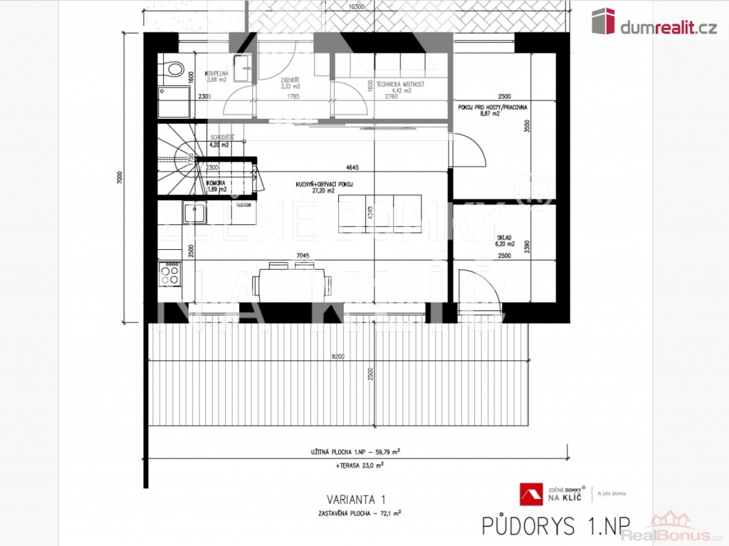 Dům v provedení na klíč, pozemek a DPH, Dumrealit.cz Vám zprostředkuje prodej výstavby domu ROW 5+kk s obytnou plochou 120m ve Zlíně části Prštné na pozemku 1005m. Cena zahrnuje patrový zděný rodinný dům v provedení na klíč, nově zprovozněna a zlegalizována studna včetně technologií a napojení, domácí čistírna odpadních vod včetně odvodu přečištěné vody, veškeré sítě napojeny na rodinný dům, revize, kolaudace a pozemku. Na pozemku nyní stojí malý domek využívaný jako chatka, která je podsklepena, dále studna a přívod elektřiny. Výhodou pozemku je jeho oplocení. V projektu jsou možné variabilní úpravy dispozice, posuny příček, oken nebo dispozici upravit na 4+kk + garáž viz vizualizace a půdorys. Můžete měnit jeho velikost a tvar a nebo si nechat naprojektovat dům dle vlastních představ a požadavků. Patrový dům je ideální pro 5 člennou rodinu s nízkými provozními náklady. Uvedená cena je za pozemek, kompletní stavbu domu v provedení na klíč, projektové dokumentace, vyřízení stavebního povolení, základové desky až po kolaudaci. V uvedené ceně můžete počítat také s finálními povrchovými úpravami exteriéru i interiéru, a to včetně elektroinstalací, sanitárního vybavení s bateriemi, interiérovými dveřmi včetně obložek. Vytápění bude řešeno teplovodním podlahovým topením v kombinaci tepelného čerpadla se 180L zásobníkem na teplou vodu. Dle dohody změníme systém vytápění nebo vystavíme komín pro krbové kamna nebo pro využití krbové vložky. Kryté garážové stání nebo venkovní krytou či nekrytou terasu za příplatek. Pro náročnější klienty máme nabídku nadstandardního vybavení chytré domácnosti, klimatizaci, externí žaluzie, rolety, rekuperaci nebo fotovoltaiku. V ceně není kuchyňská linka. Doba výstavby cca 12-14 měsíců od vydání stavebního povolení a stavbu zahájíme do 10 dnů od jeho vydání. Neváhejte mě kontaktovat ohledně prohlídky pozemku a popřípadě našich hotových či probíhajících staveb. Doporučuji Ev. číslo: 654648. Energetický štítek: A (45 kWh/m2/rok).