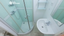 Vstupní chodba se šatnou, pokoj s kuchyňským koutem, koupelna s WC, zasklená lodžie a sklepní kóje.