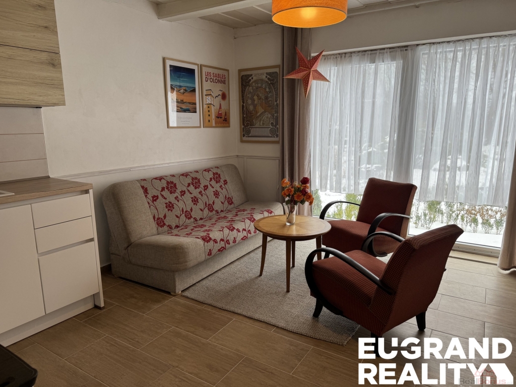 Prakticky řešené přízemí nabízí prostorný obývací pokoj s moderní kuchyní jako hlavní obytný prostor domu. Druhý pokoj disponuje vlastním kuchyňským zázemím, což umožňuje variabilní využití ? například jako samostatný hostovský apartmán, vícegenerační bydlení nebo kombinaci bydlení a rekreace. Dále je zde koupelna a samostatné WC. Podkroví přístupné po schodišti nabízí další dva pokoje s příjemnou atmosférou. Dům je z poloviny podsklepen a disponuje vstupem na půdu.