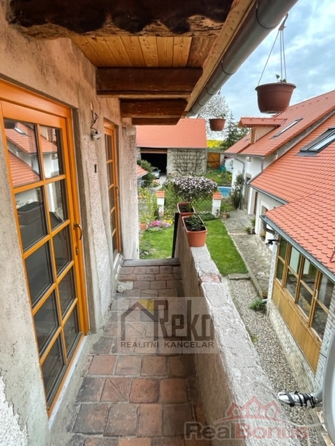 Prodej dvou rodinných domů v obci Vraný u Slaného na pozemku 916 m2. Pozemek je od okolí oddělen zdí a vytváří tak maximální soukromí a uzavřený celek. První obytný dům 4+1 po rekonstrukci s otevřeným krbem a půdní vestavbou. Kuchyň je vybavena veškerými spotřebiči a nabízí francouzskými okny přístup rovnou do zahrady. Druhý dům také po rekonstrukci, v přízemí je kuchyň s pokojem a koupelnou se sprchovým koutem. V patře dva pokoje. Možnost připojení na krbová kamna s výměníkem do ÚT. Domy jsou vytápěny ÚT na plynové kotle. V koupelnách, kuchyních a chodbách instalováno podlahové topení. Nové sedlové střechy se střešní krytinou Bobrovka. Nová střešní okna Velux a okna Vekra. Vodovod i studna, el., plyn, kanalizace. Udržovaná zahrada nabízí soukromí s vyhřívaným bazénem, prostorem pro posezení a jezírkem.
