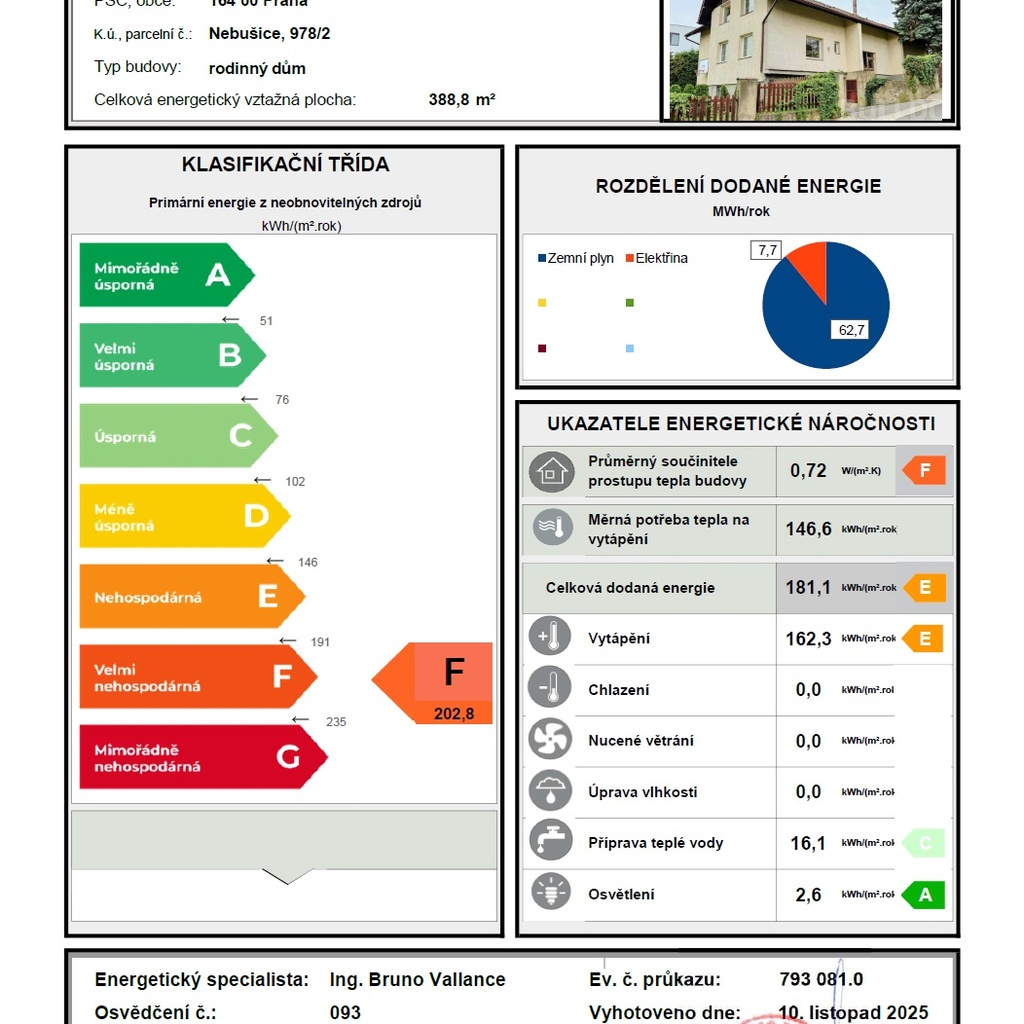 | Energetická třída | F - Velmi nehospodárná |