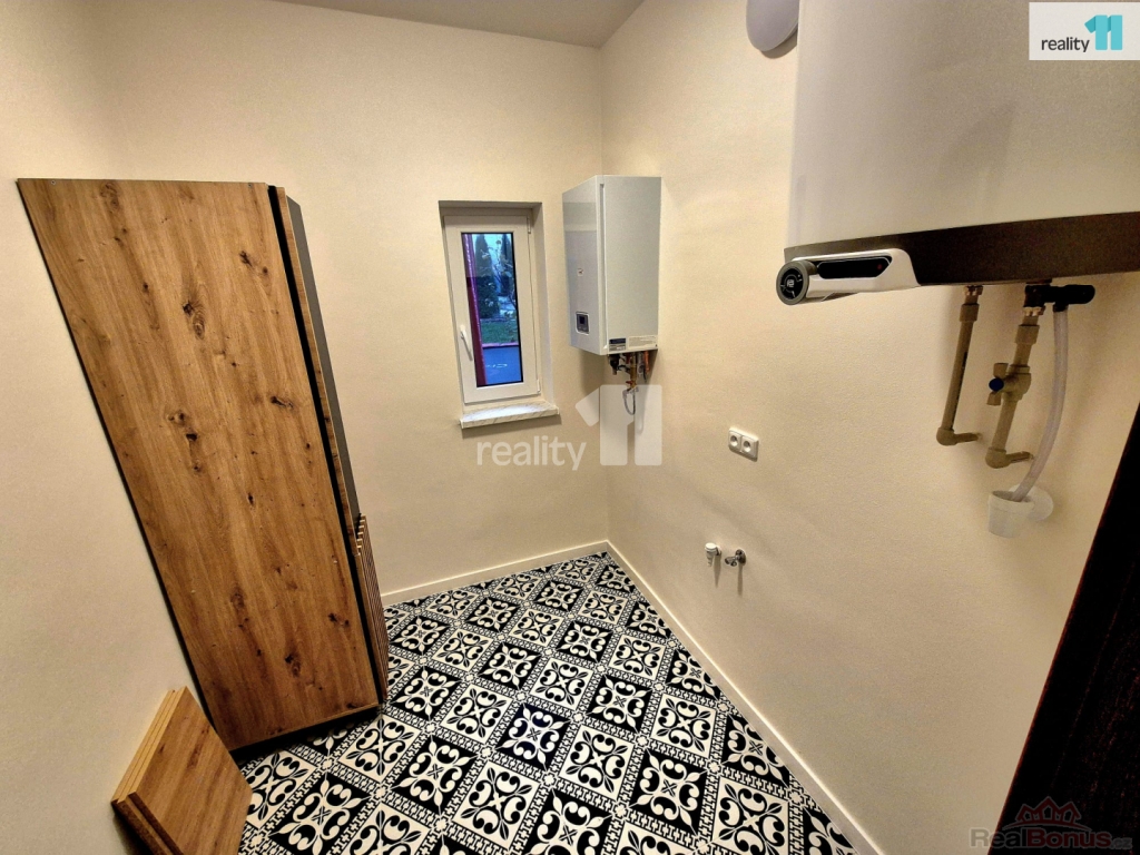 Součástí bytu je také technická místnost s elektrickým kotlem a bojlerem, kde je místo pro pračku i sušičku, a dále prostorná sklepní kóje.