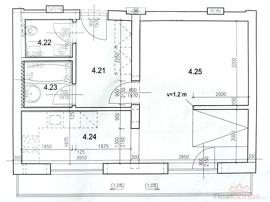 WC ? plynový kotel BAXI, bojler na ohřev vody, pračka, poličky,