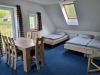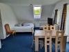 Chalupa je dispozičně řešena jako 6+kk, 2x koupelna s WC, na chalupu navazuje stodola, kterou je možné propojit a zvětšit kapacitu o 1-2 pokoje a další koupelnu.