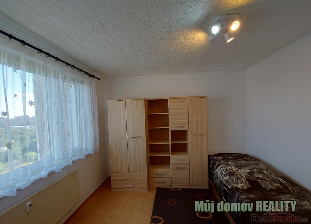 Byt má praktické dispoziční řešení: předsíň, tři neprůchozí pokoje, samostatnou kuchyni, koupelnu a oddělené WC. Je částečně zařízený vestavěné skříně v předsíni i ložnici, moderní kuchyňská linka s horkovzdušnou troubou, sklokeramickou deskou, digestoří s venkovním odtahem, novou myčkou a velkou lednicí s mrazákem.