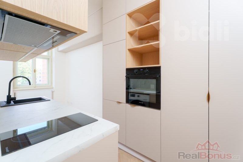 Byt 1+kk, po kompletní rekonstrukci, v 1. NP cihlového domu po v ulici Bořivojova, Praha 3.