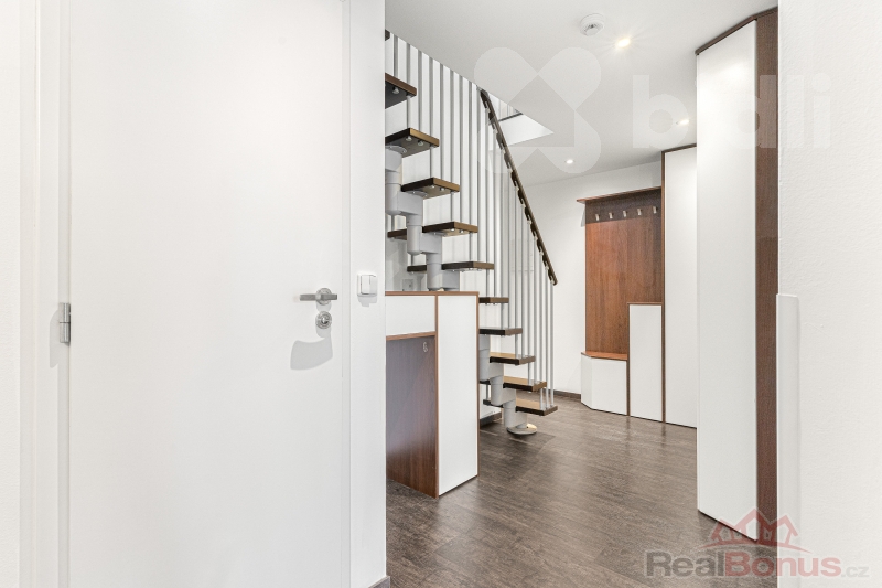 A aby to celé nebylo jen hezké na pohled: úložné prostory jsou tady fakt promyšlené - v chodbě, ložnici i obýváku, plus samostatný úložný prostor. Bezpečnostní dveře Sherlock pro klid v hlavě.