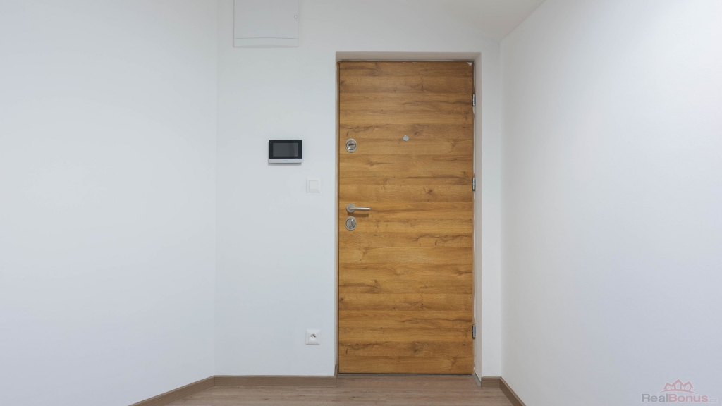 Vstupní dveře: Bezpečnostní dveře splňují třídu 3, certifikovanou dle platné normy, a zajišťují protihlukovou izolaci 44 dB, díky dvojitému těsnění a patentované konstrukci. Zároveň splňují protipožární třídu EI 30, což znamená, že dokáží zadržet požár mimo byt po dobu 30 minut.