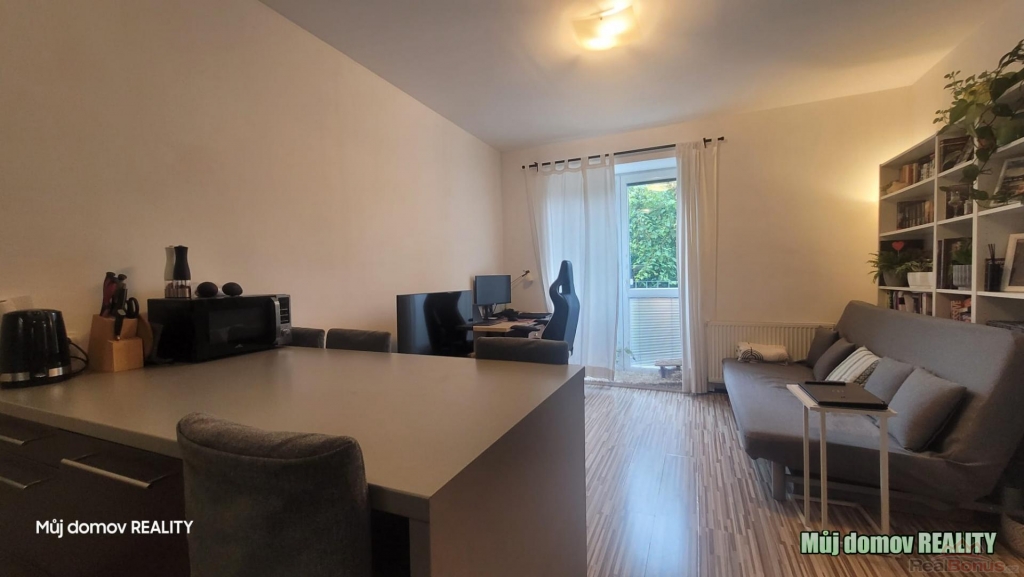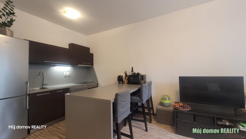 Byt disponuje moderně vybavenou kuchyní s kuchyňským koutem, který je propojen s obývacím prostorem a poskytuje přístup na menší anglický balkon. Dále je zde samostatná ložnice, koupelna se sprchovým koutem a samostatná toaleta. Součástí bytu je také praktická komora umístěná v předsíni, která nabízí další úložné prostory.