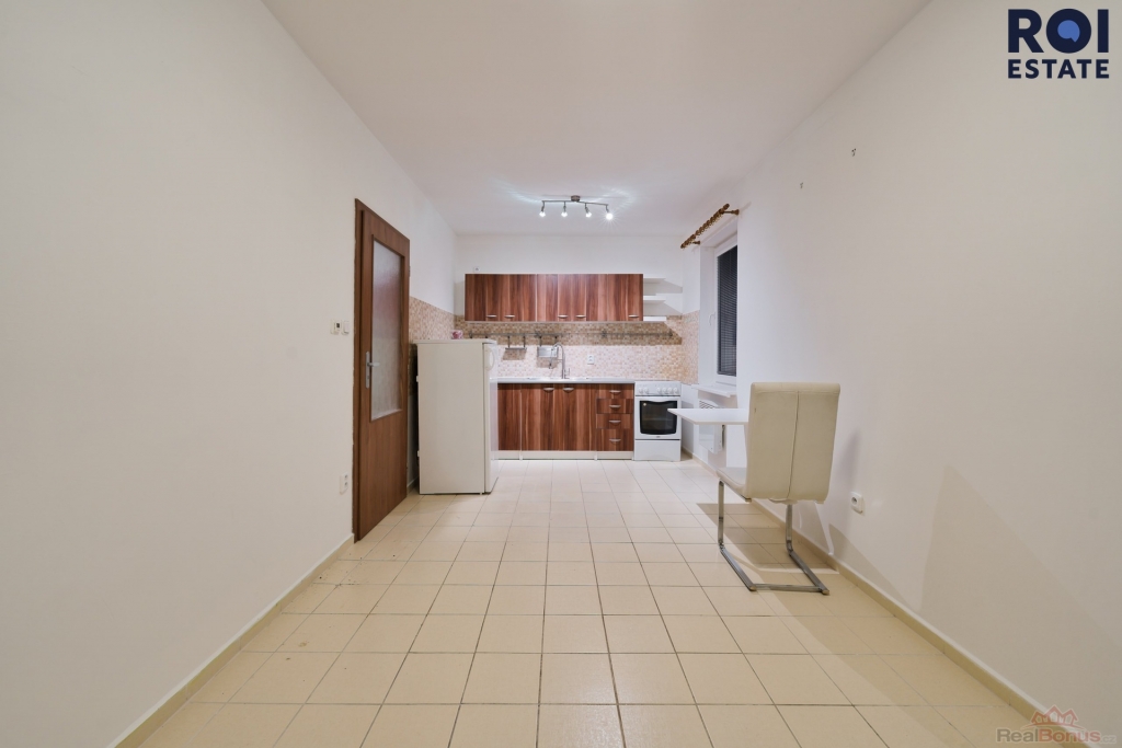 Byt se nachází v menším cihlovém domě, který má své kouzlo i pocit soukromí. Hlavní místnost je světlá, dobře členěná a nabízí prostor pro vytvoření pohodlného domova podle svých představ. Kuchyňský kout je prakticky vybavený, nechybí sporák, trouba ani lednice. Velké okno vnáší dovnitř přirozené světlo a dlažba v celém bytě zajišťuje nenáročnou údržbu.