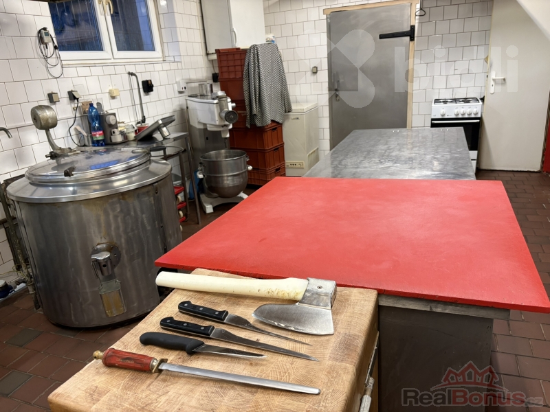 2)Bourárnu (27 m2) - výrobní část určená k bourání a přípravě masa a masných výrobků, plně vybavená - možnost ponechání vybavení dle domluvy