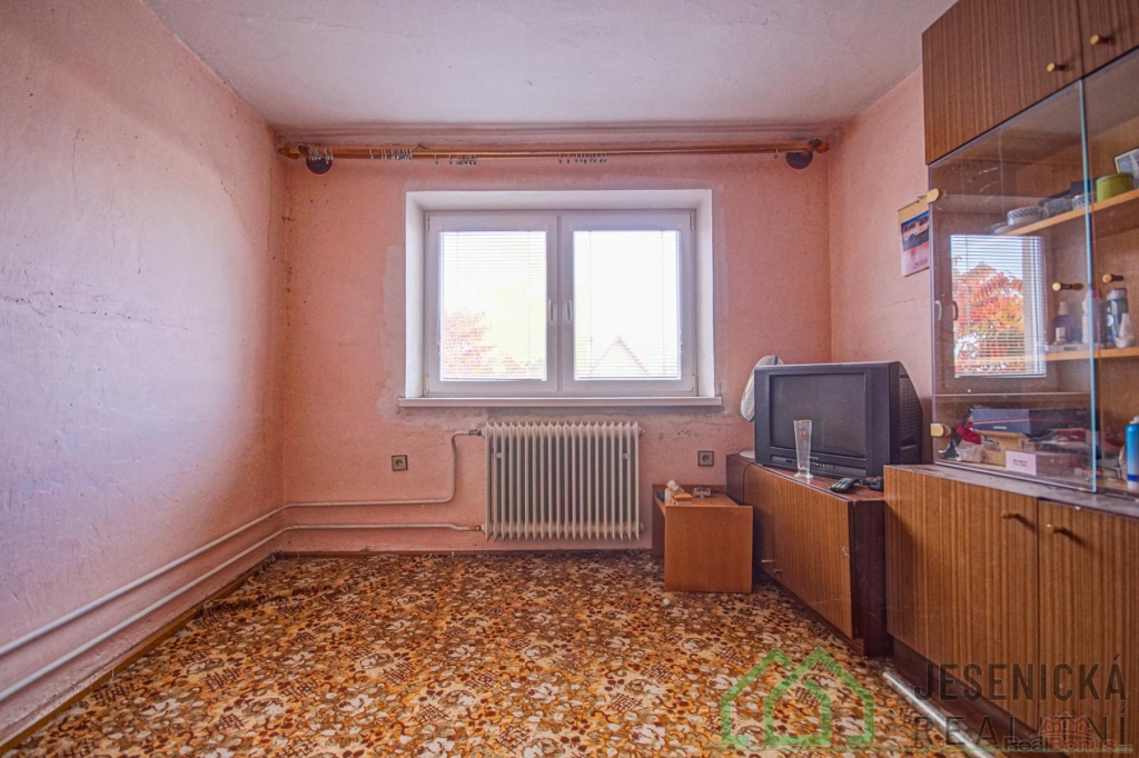 Kancelář na trhu s nemovitostmi, Jesenická realitní, představuje jedinečnou příležitost pořízení rodinného domu s garáží a zahradou ve městě Javorník okr. Jeseník.